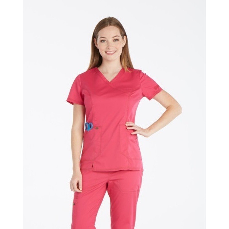 discover the dickies medical women's jacket, an elegant design with a crossed v-neck and a fitted cut that accentuates your silhouette. With a contrasting touch on the seams, this garment combines style and functionality for an impeccable professional look.