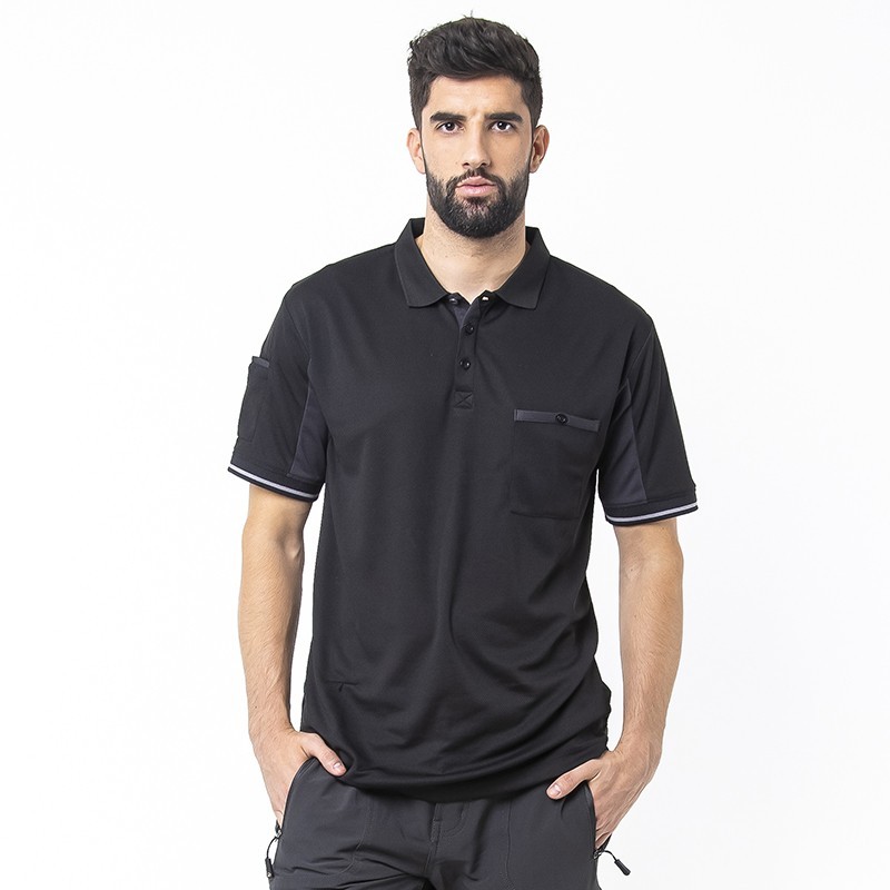 this bicoloured short sleeve technical polo is ideal for working in high temperatures thanks to its cool-prime technical fabric, which offers great ability to eliminate moisture and keep you cool and comfortable throughout the day.
