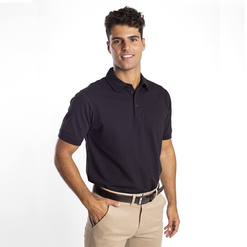 this unisex dress polo with antibacterial finish is ideal for those looking for comfort and style in their daily life, whether at work or in informal activities. Its short-sleeved design and shirt collar, along with a regular fit cut, make it perfect for hospitality professionals, cleaning environments, or simply for those looking for a comfortable and elegant dress shirt.