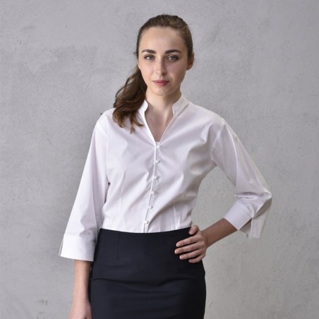 Camisa entallada para mujer, ideal como uniforme para hostelería y servicios. Su diseño clásico y elegante la hace perfecta para cualquier ocasión, ofreciendo comodidad y estilo durante todo el día.