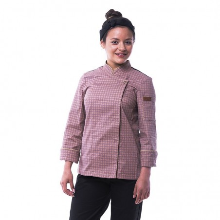 Descubre la chaqueta de cocinera mujer modelo AROMA, con un estampado de molinillos que añade un toque de personalidad a tu uniforme. Su tejido técnico transpirable te mantiene fresca y cómoda durante todo el día, ideal para profesionales que buscan estilo y funcionalidad en la cocina.