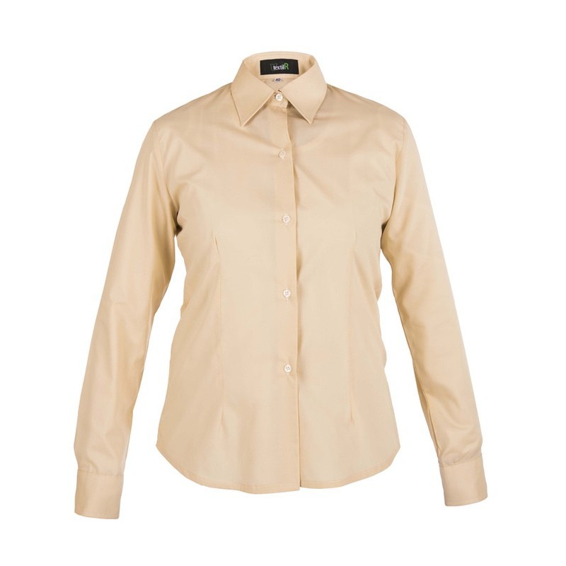 camisa señora entallada manga larga sin bolsillo, ideal para ocasiones formales y profesionales. Cuello camisero y botones a tono para un diseño elegante y sofisticado. Confeccionada en tejido de poplin de 105gr, ofrece un ajuste perfecto y una silueta favorecedora.