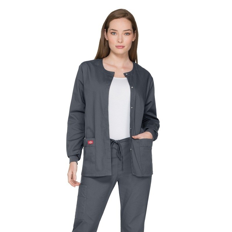 descubre la chaqueta dickies medical para mujer, diseñada con un corte clásico que ofrece un ajuste cómodo y profesional. Su cierre con corchetes añade un toque de estilo y funcionalidad, perfecta para entornos médicos y sanitarios.
