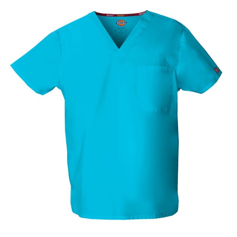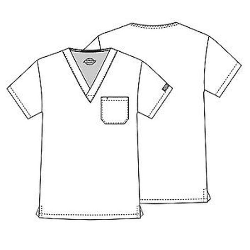 scopri la giacca dickies medical, un design unisex con collo a v che combina funzionalità e stile. La sua tasca per la penna aggiunge un tocco pratico per i professionisti che cercano efficienza nel loro uniforme.