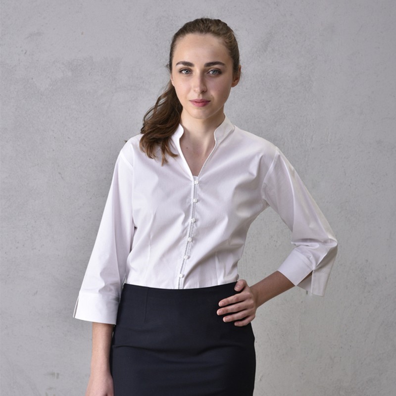 la blusa elastica ginebra per donna è un capo moderno ed elegante, ideale per qualsiasi occasione, sia in un ambiente professionale che informale. Con un design aderente e maniche 3/4 con polsino aperto, questa blusa offre comfort e stile. Il suo tessuto elastico di alta qualità, con un alto percentuale di cotone, garantisce una finitura morbida e facile da stirare. Perfetta da indossare come camicia da lavoro o nell'industria horeca, questa blusa è un'ottima scelta.