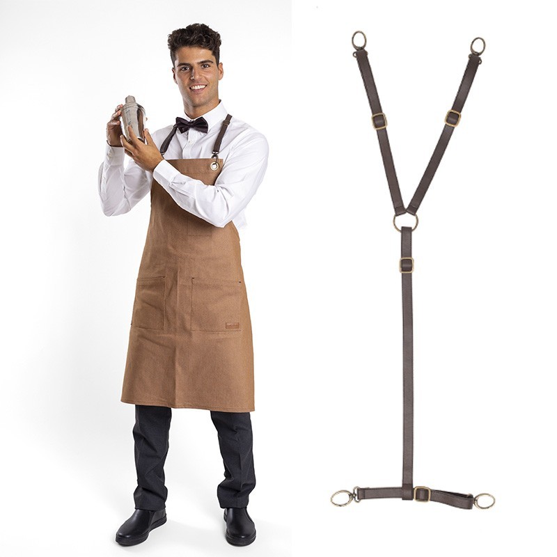 eleva il tuo stile in cucina con questa cintura in polipelle per grembiule, un accessorio pratico ed elegante che offre un effetto pelle sofisticato. Il suo design regolabile si adatta a diversi utenti, mentre le fibbie con moschettoni in oro vecchio apportano un tocco di distinzione. Ideale per professionisti dell'ospitalità e cuochi che cercano un tocco di eleganza nel loro uniforme da cucina.