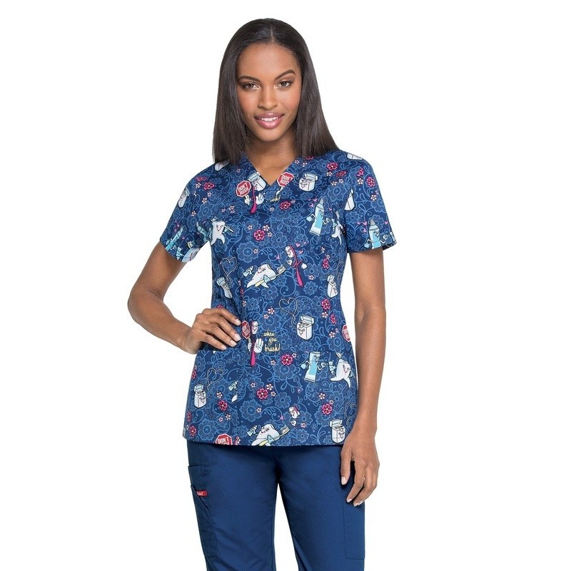 scopri la giacca dickies medical per signora, un design elegante e pratico. Il suo taglio svasato e collo a v offrono uno stile sofisticato, mentre la stampa aggiunge un tocco unico. Ideale per professionisti che cercano di combinare stile e funzionalità nel loro uniforme.
