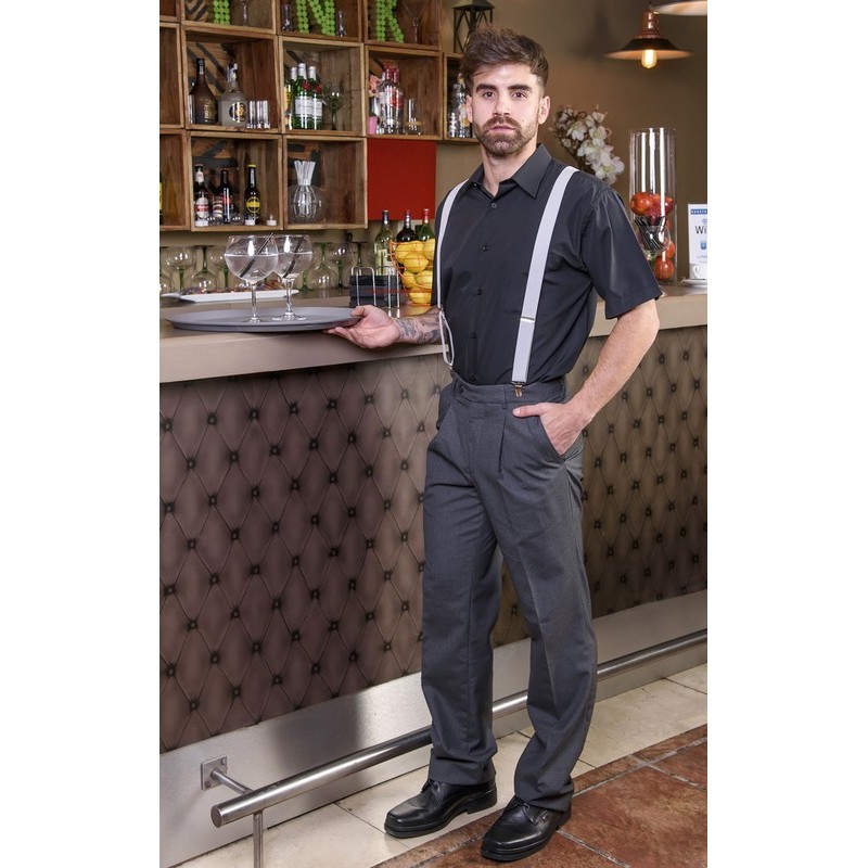 questo pantalone per signore di alta confezione si distingue per la cintura antiscivolo, design con 1 piega, tasca francese e posteriore con bottone. Il suo stile classico e dettagli di qualità lo rendono ideale per qualsiasi occasione formale o professionale.